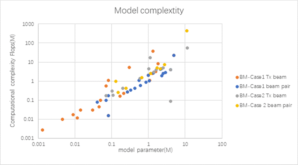 -        AI/ML complexity. For a given company’s model design, in terms of model inference complexity (model complexity and computational complexity), a lower complexity model can still achieve acceptable positioning accuracy (e.g., <1m), albeit degraded, when compared to a higher complexity model.